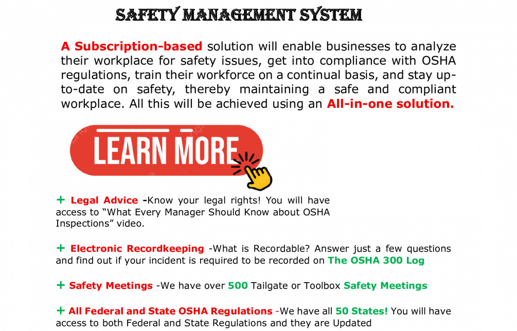 Being responsible for OSHA compliance the choice is clear, either try to produce this information myself, or access a complete accurate ready made program such as OSHA Nation`s.